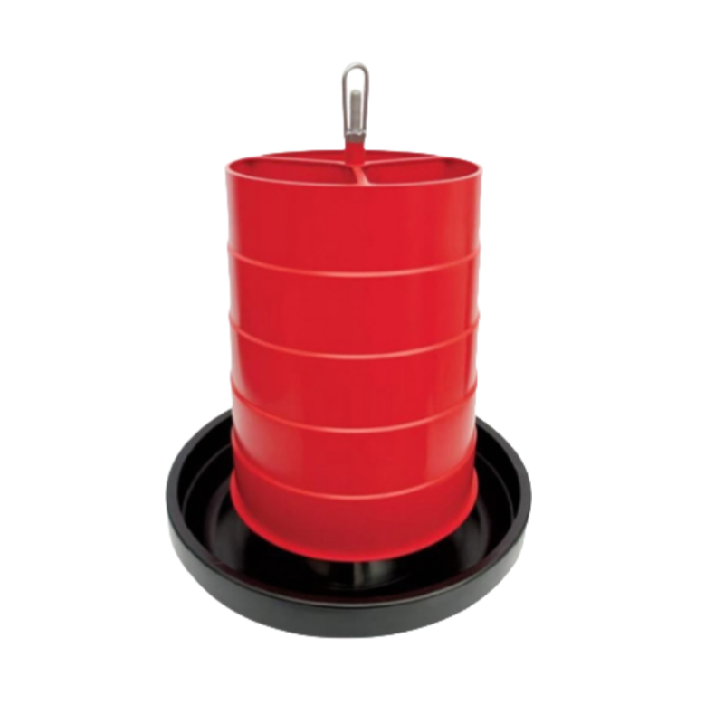 Comedero Manual tipo tolva diseñado para aves de corral como pollos y gallinas.