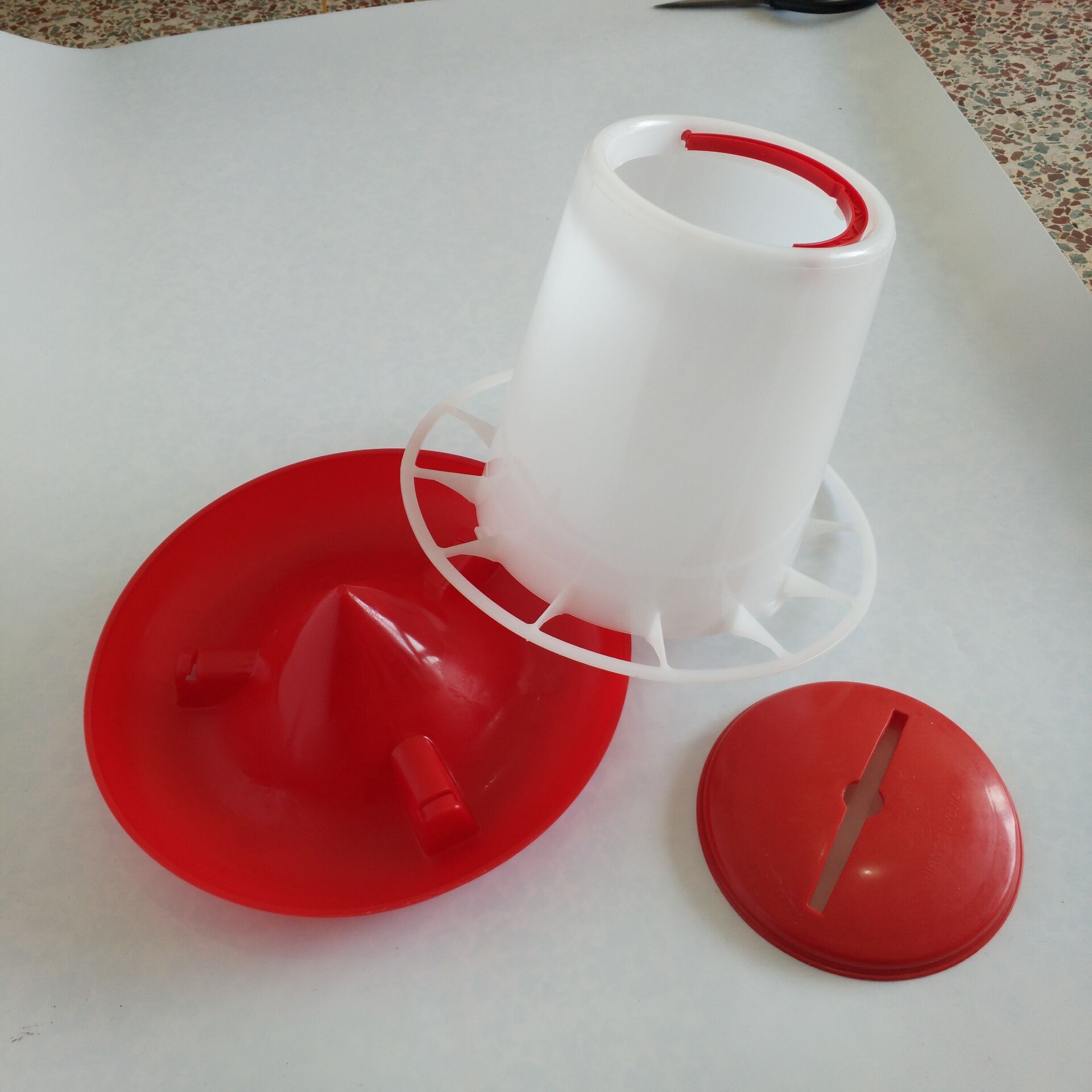 Bebedero para aves, utilizado para pollitos, gallinas o pollonas.