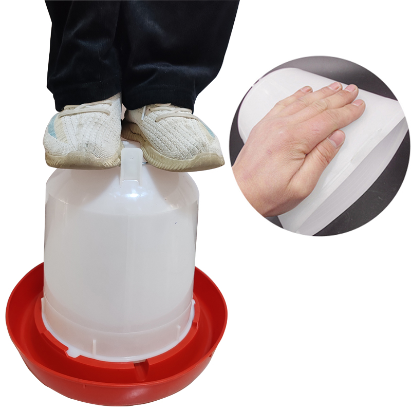 - Diseño:Cuenta con una base circular con divisiones para evitar que las aves se metan dentro, reduzcan el desperdicio de agua y permitan que varias beban a la vez.