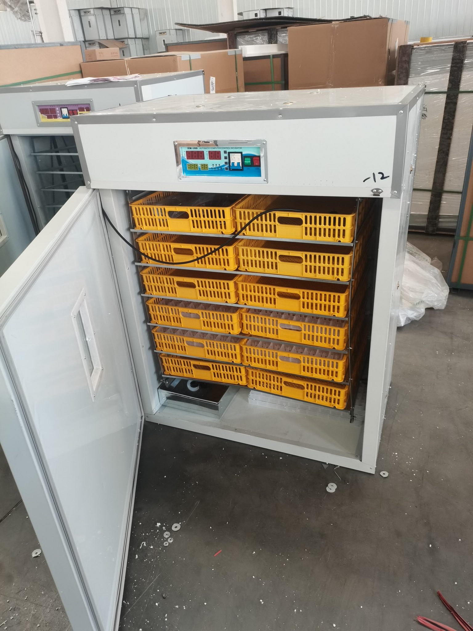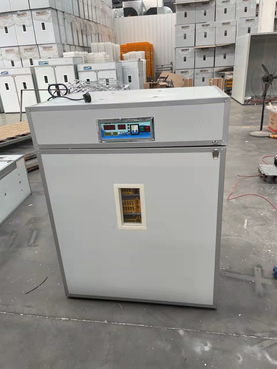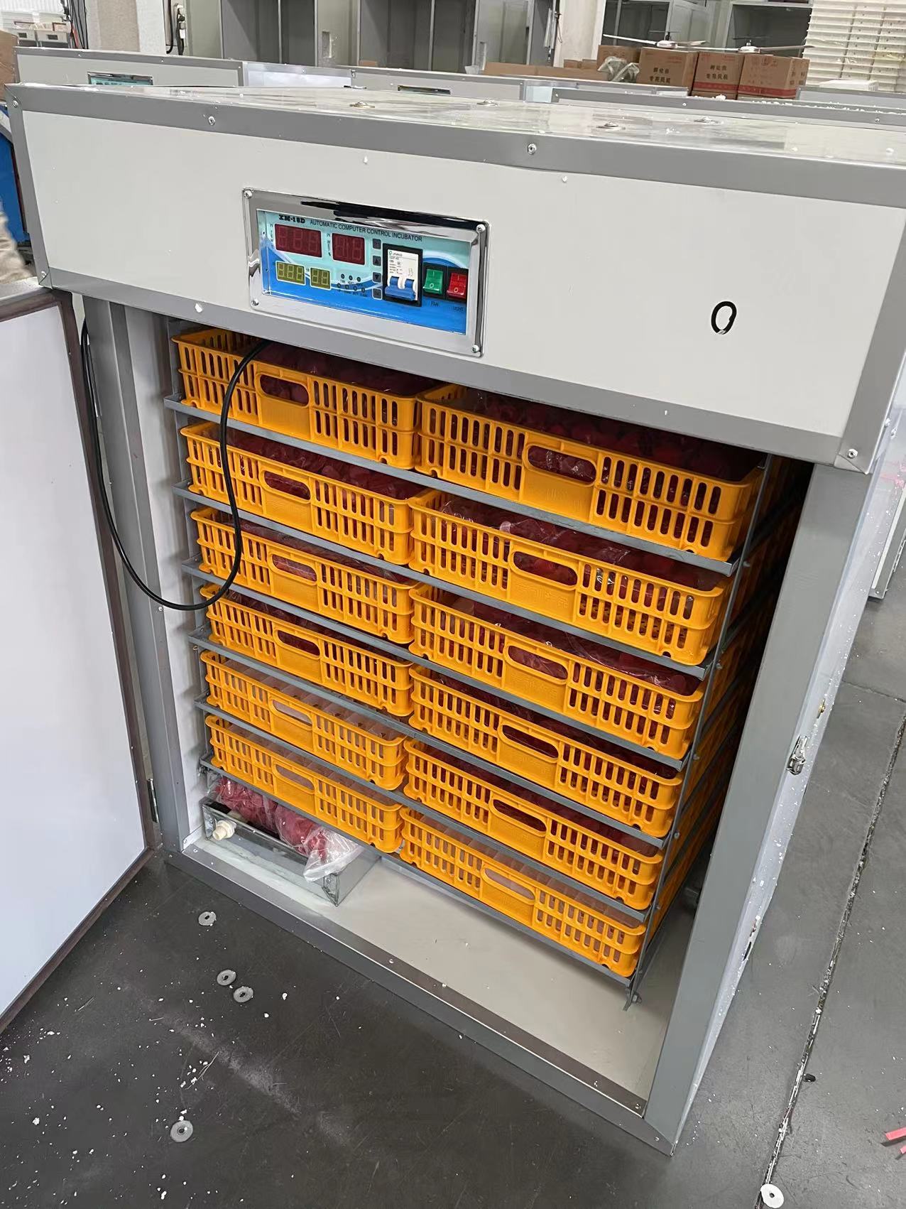 Es una incubadora industrial de huevos, con una capacidad de 1056 huevos, diseñada para la avicultura.